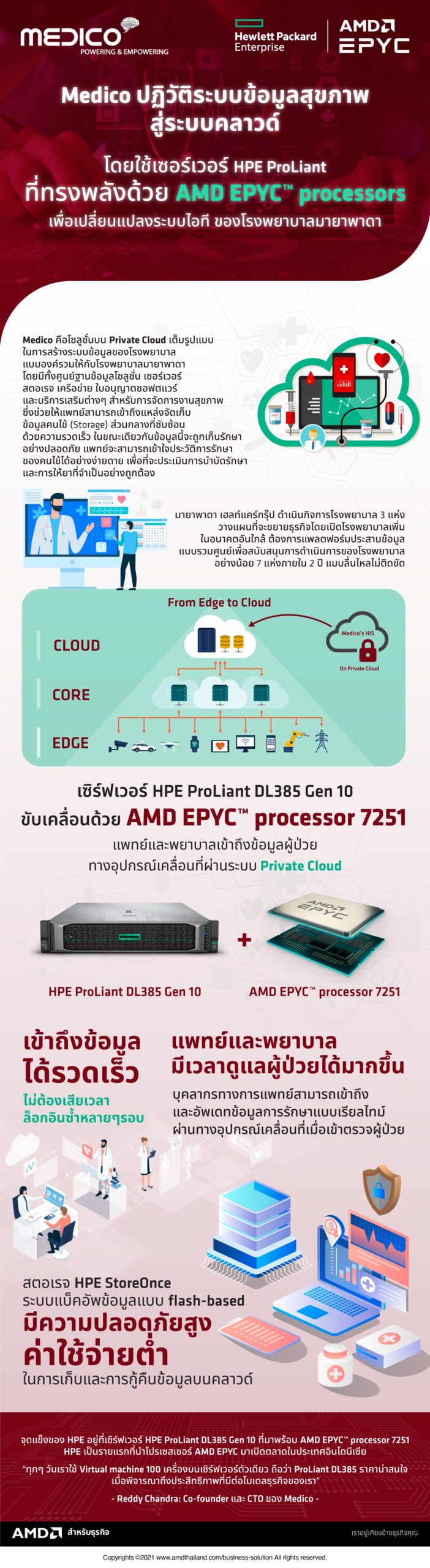 HPE ProLiant DL385 Gen 10 ที่มาพร้อม AMD EPYC™ processor 7251 และ AMD EPYC™ processor 7601